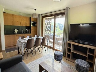 "Le Hameau du Borsat IV", 1-room studio 23 m2. Modern and cosy furnishings: living/sleeping room with 1 pull-out bed (2 pers. 2 x 80 cm, length 190 cm), dining table and TV. Alcove with sliding door with 1 pull-out bed (2 pers. 2 x 80 cm...