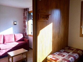 "Parc des Airelles", 2-room apartment 35 to 46 m2. Bright, beautiful furnishings: living/sleeping room with 2 sleeping facilities, dining table and TV can be hired. Alcove with 2 sleeping facilities (90 cm). 1 room with 1 french bed (140...