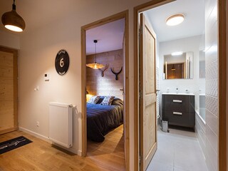 4-room apartment 60 m2. Living/dining room with TV (flat screen). 1 room with 1 french bed and shower. 1 room with 2 beds. Alcove, without window with 2 sleeping facilities. Kitchenette (dishwasher, 2 ceramic glass hob hotplates, toaster...