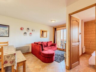 "Pointe des aravis B13", 2-room apartment 29 m2 on 1st floor. Living/dining room with TV. Exit to the balcony. Entrance hall with 2 wall-trunk beds (80 cm, length 190 cm). 1 room with 1 french bed (140 cm, length 190 cm). Kitchenette (4 ...