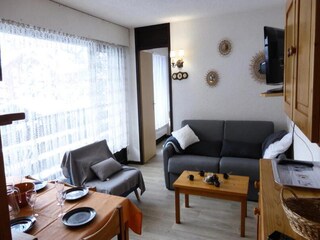 "La pointe des Aravis 4", 1-room studio 23 m2 on 3rd floor. Living/dining room with 1 double sofabed (135 cm), TV and flat screen. Exit to the balcony. Entrance hall with 1 x 2 bunk beds (90 cm). Kitchenette (oven, dishwasher, toaster, k...