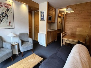 This cozy apartment is perfect for a budget-friendly stay in the Arc 1800 ski resort. It features a living room with a convertible sofa that can accommodate two guests, as well as a Murphy bed for additional sleeping space. The apartment...