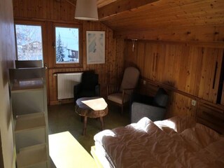 This cozy 2-room apartment, located in a chalet building, offers a comfortable retreat with a beautiful view of the surrounding mountains. The living room can be separated by a sliding door for added privacy, featuring a double sofa bed ...