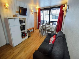 1-room studio 25 m2 on 7th floor. Living/dining room with 1 pull-out bed (2 pers. 2 x 80 cm, length 190 cm), TV (flat screen). Entrance hall with 1 x 2 bunk beds (80 cm, length 190 cm). Kitchenette (mini-oven, oven, dishwasher, 4 ceramic...