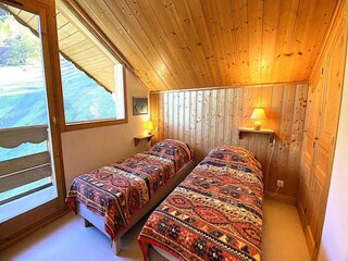 "Bâtiment A", 3-room apartment 40 m2 on 5th floor, north facing position. Cosy furnishings: living/dining room with 1 pull-out bed (2 pers. 2 x 80 cm, length 190 cm), TV (flat screen), radio and DVD. Exit to the balcony, north facing pos...