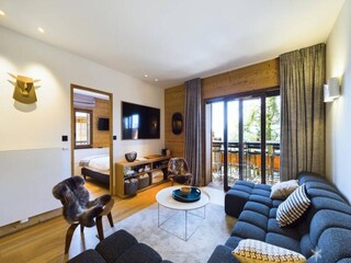 "Parc des Airelles", 2-room apartment 35 to 46 m2. Bright, beautiful furnishings: living/sleeping room with 2 sleeping facilities, dining table and TV can be hired. Alcove with 2 sleeping facilities (90 cm). 1 room with 1 french bed (140...