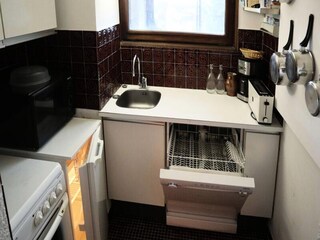 "La coupe de Cristal", 3-room maisonette 60 m2 on 3rd floor. Partly with sloping ceilings: living/dining room with open-hearth fireplace (only for decoration), TV and flat screen. Exit to the balcony. Open kitchen (4 hot plates, dishwash...