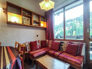 This charming studio apartment is designed for up to four people, featuring a mountain corner with bunk beds and a convertible sofa in the living room. Pets are welcome, and the apartment offers two balconies with stunning mountain views...