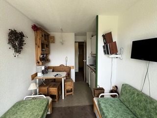 "Sérac A10", 1-room apartment 20 m2 on 10th floor. Bright, partly renovated in 2022, very beautiful and romantic furnishings: living/dining room with 1 double sofabed (1 x 140 cm, length 190 cm), TV (flat screen), electric heater. Small,...
