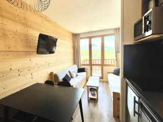 High above the Tarentaise Valley, this charming one-bedroom apartment in the Andromède Residence offers a perfect alpine retreat in Belle Plagne. With its southwest-facing balcony, you can soak in the breathtaking mountain views while ba...