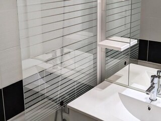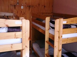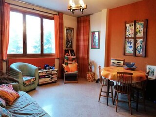 2-room apartment 33 m2 on 1st floor. Living/dining room. 1 room with 1 french bed (140 cm). Sleeping alcove, without window with 1 x 2 bunk beds (80 cm). Kitchenette (2 hot plates, mini-oven, dishwasher, microwave). Bathroom, sep. WC. El...