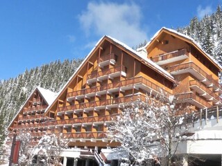 "Le Petit Savoyard", 3-room apartment 35 m2 on 1st floor, south facing position. Object suitable for 2 adults + 2 children. Cosy and wooden furniture furnishings: living/sleeping room with 1 sofabed (140 cm, length 190 cm), dining table ...