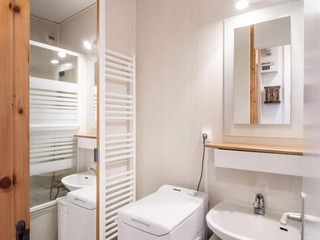 This cozy apartment in the heart of a village center accommodates up to 6 guests with two bedrooms, one featuring a double bed and the other two single beds, plus a cabin area with bunk beds. The living room includes a sofa bed for two. ...