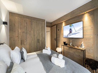 "Parc des Airelles", 2-room apartment 35 to 46 m2. Bright, beautiful furnishings: living/sleeping room with 2 sleeping facilities, dining table and TV can be hired. Alcove with 2 sleeping facilities (90 cm). 1 room with 1 french bed (140...