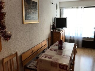 1-room studio 20 m2 on 6th floor. Living/dining room with 1 double sofabed (140 cm, length 190 cm), TV. Kitchenette (dishwasher, 2 induction hot plates, microwave). Shower/WC. Small balcony, north-east facing position. View of the mounta...