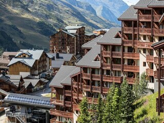 "Odalys Essentielle Le Hameau du Mottaret", 3-room apartment 43 m2 on 2 levels. Practical furnishings: living/sleeping room with 2 sleeping facilities, dining table and TV. 1 room with 2 sleeping facilities. Kitchenette (2 hot plates, di...