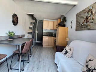 "Asters 1126 Bâtiment A2", 1-room apartment 18 m2, on the ground floor. Beautiful furnishings: living/dining room with 1 pull-out bed (2 pers. 2 x 80 cm, length 190 cm), TV (flat screen). Kitchenette (2 ceramic glass hob hotplates, kettl...