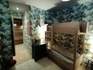 This charming mountain-style studio offers cozy accommodations for up to five guests, with a design inspired by alpine living. The sleeping area features two bunk beds and a mezzanine bed with custom niches, while the living room include...