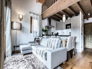 This cozy chalet-style apartment in Courchevel 1550 offers comfortable accommodation for up to 6 people. It features a living room with a sofa bed for two, a bedroom with a double bed, and a cabin area with bunk beds for two. A separate ...