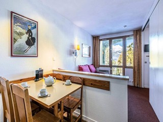 "L'Aiguille Noire", 1-room studio 24 m2 on 2nd floor. Living/dining room with 1 wall-trunk bed (160 cm, length 200 cm). Exit to the balcony. Alcove with 2 beds (80 cm, length 190 cm), 1 x 1 bunk beds (90 cm, length 190 cm). Kitchenette (...