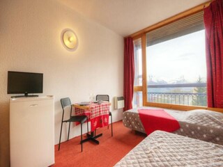 This charming 2-room apartment, located on the 3rd floor of a residence in the heart of the village, is perfect for up to 5 guests. It features a bedroom with a double bed and pull-out beds, as well as a mountain corner with bunk beds, e...
