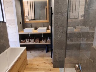 Breathtaking view of the mountains. 100m from all amenities & 500m from the ski slopes. 4 double bedrooms and 1 dormitory, 5 bathrooms, several balconies. The Chalet "La Grange" is ideal for families or groups of friends, this new "c...