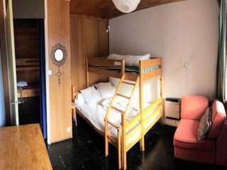 2-room apartment 30 m2 on 1st floor. Practical and beautiful furnishings: living/dining room with flat screen and electric heater. 1 small room with 1 french bed. Alcove with 1 x 2 bunk beds (80 cm). Kitchenette (2 hot plates, dishwasher...