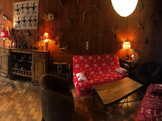 "Le Grand Lodge", 3-room apartment 51 m2. Practical furnishings: living/sleeping room with 1 double sofabed, dining table and TV can be hired. 1 room with 1 french bed. 1 room with 2 sleeping facilities. 1 small room with 1 x 2 bunk beds...
