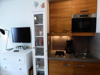 1-room studio 16 m2 on 13rd floor, north facing position. Simple furnishings: living/dining room with 1 pull-out bed (2 pers. 2 x 80 cm, length 190 cm), TV (flat screen). Kitchenette (2 hot plates, toaster, microwave, electric coffee mac...