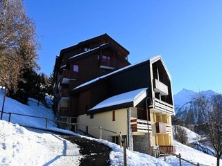 "Jardins Alpins 5", 3-room apartment 45 m2 on 2nd floor, south-east facing position. Entrance hall. 1 room with 1 french bed (140 cm). 1 room with 1 x 2 bunk beds (80 cm). Living/dining room with dining table and TV. Exit to the balcony....