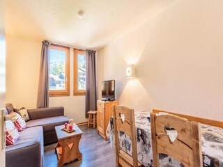 Studio in Le Quartz with 1 living area, 1 kitchenette, 1 bathroom and 1 toilet Studio details: Sleeps 3 Livingroom: 1 double sofa bed and 1 single bed Kitchen: Equipped open-plan kitchenette and living area Bathrooms: 1 bath or 1 shower...