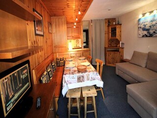 "Super Venosc", 1-room studio 33 m2 on 3rd floor. Object suitable for 4 adults. Living room with 1 x 2 bunk beds, 1 double bed and TV. Open kitchen (2 hot plates, oven, dishwasher, toaster, kettle, microwave, freezer, electric coffee mac...