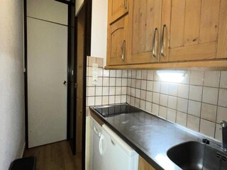 "Odalys Essentielle Le Hameau du Mottaret", 2-room apartment 30 m2. Practical furnishings: living/sleeping room with 2 beds, dining table and TV. 1 room with 3 sleeping facilities. Kitchenette (2 hot plates, dishwasher, kettle, microwave...