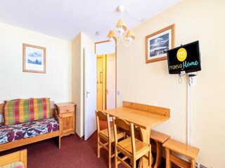 "La pointe des Aravis 4", 1-room studio 23 m2 on 3rd floor. Living/dining room with 1 double sofabed (135 cm), TV and flat screen. Exit to the balcony. Entrance hall with 1 x 2 bunk beds (90 cm). Kitchenette (oven, dishwasher, toaster, k...