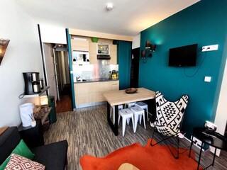 "Topaze 31", 1-room studio 25 m2, on the ground floor. Living/dining room with 1 sofabed (140 cm, length 190 cm), dining table and TV (flat screen). Exit to the balcony. Sleeping alcove with 2 pull-out beds (2 x 70 cm, length 190 cm). Op...
