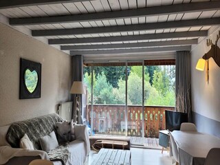 "V. Du Bachat - Sorbiers F", 2-room apartment 42 m2, on the ground floor. Object suitable for 6 adults. 1 room with 1 double bed. Living room with 1 sofabed and 1 x 2 bunk beds, 1 pull-out bed. Open kitchen (4 hot plates, oven, kettle, m...