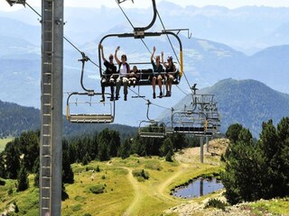 This studio apartment for up to 4 people offers a comfortable and convenient stay with direct access to the slopes. It features a living room with a convertible sofa (140x190 cm) and two single folding bunk beds (80x190 cm), ideal for fa...
