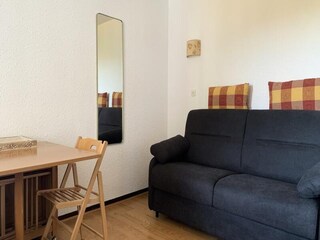 This charming studio apartment, located on the slopes of Pra-Loup 1600, offers a cozy and inviting atmosphere for up to 4 guests. It features a mountain area with two bunk beds, complete with duvets, and a living room equipped with a 2-s...