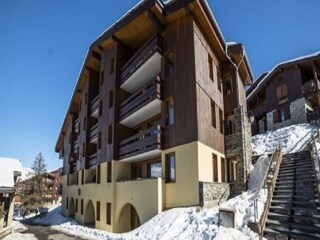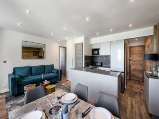 "Odalys Essentielle Le Hameau du Mottaret", 2-room apartment 30 m2. Practical furnishings: living/sleeping room with 2 beds, dining table and TV. 1 room with 3 sleeping facilities. Kitchenette (2 hot plates, dishwasher, kettle, microwave...