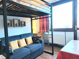 Located in the "Le Grand Sud" residence, just 200m from the ALP EXPRESS ski resort, this 21 m² studio cabin offers all the comforts you need for a mountain stay. DESCRIPTION An entrance hall with two bunk beds A bedroom with a double bed...