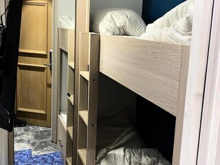 This spacious 3-room apartment is perfect for up to eight guests, offering comfort and convenience. The first bedroom includes a double bed (140), while the second features another double bed (140) with a single bunk bed (90) above. The ...