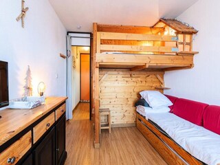 Maxi-studio 6 people 25 M² Loggia Expo South/West Mountain corner with bunk beds for 2 people Living room: 1 sofa bed + 2 single beds Bathroom: shower + toilet Equipped kitchen Ski locker Bright, quiet and well-equipped apartment ...