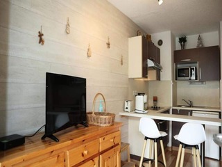 This 26 m² studio is a fully renovated space, comfortably accommodating 4 people. It features a living area with a sofa bed and a separate mountain corner with 2 single bunk beds. The apartment is non-smoking and pet-free. It offers a la...