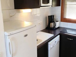 1-room studio 25 m2 on 7th floor. Living/dining room with 1 sofabed (140 cm, length 190 cm), TV (flat screen). Exit to the balcony, south facing position. Entrance hall with 1 x 2 bunk beds (80 cm, length 190 cm). Kitchenette (dishwasher...