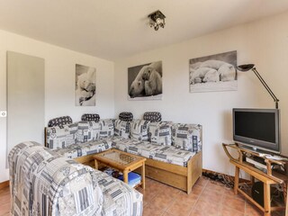 "Montagnettes Soleil 1", 3-room apartment 70 m2. Cosy and wooden furniture furnishings: large living room with open-hearth fireplace, dining table and TV. Exit to the balcony. 1 room with 1 french bed (160 cm, length 200 cm). 1 room with...