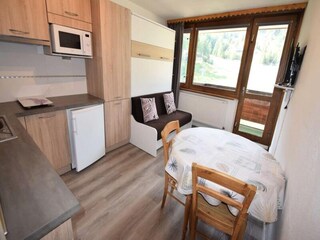 "Aravis 314", 1-room studio 20 m2 on 3rd floor. Living/dining room with 2 x 2 bunk beds (80 cm, length 190 cm), TV (flat screen). Exit to the balcony, south facing position. Kitchenette (2 hot plates, mini-oven, kettle, microwave, electr...