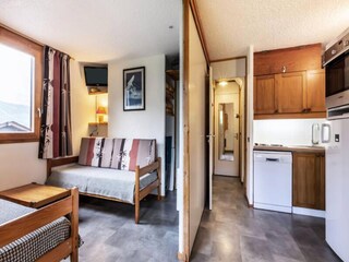 Studio in Le Quartz with 1 living area, 1 kitchenette, 1 bathroom and 1 toilet Studio details: Sleeps 2 Livingroom: 1 double sofa bed Kitchen: Fully-equipped open-plan kitchenette and living area Bathrooms: Separate toilet Comfort level...
