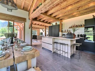 This luxurious 5-star chalet, covering 267m², accommodates up to 10 guests with four spacious bedrooms. The rooms include a master suite with a double bed and private bathroom, a twin bedroom that can be separated, a double room with a s...