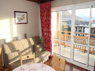 "Montagnettes Soleil 1", 3-room apartment 70 m2. Cosy and wooden furniture furnishings: large living room with open-hearth fireplace, dining table and TV. Exit to the balcony. 1 room with 1 french bed (160 cm, length 200 cm). 1 room with...