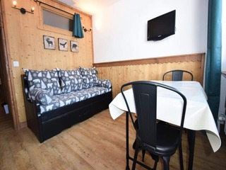 "Soldanelles 413 B", 2-room apartment 30 m2 on 4th floor. Comfortable and beautiful furnishings: living/dining room with 1 pull-out bed (2 pers. 2 x 80 cm, length 190 cm), TV (flat screen). 1 room with sliding door with 1 x 2 bunk beds (...